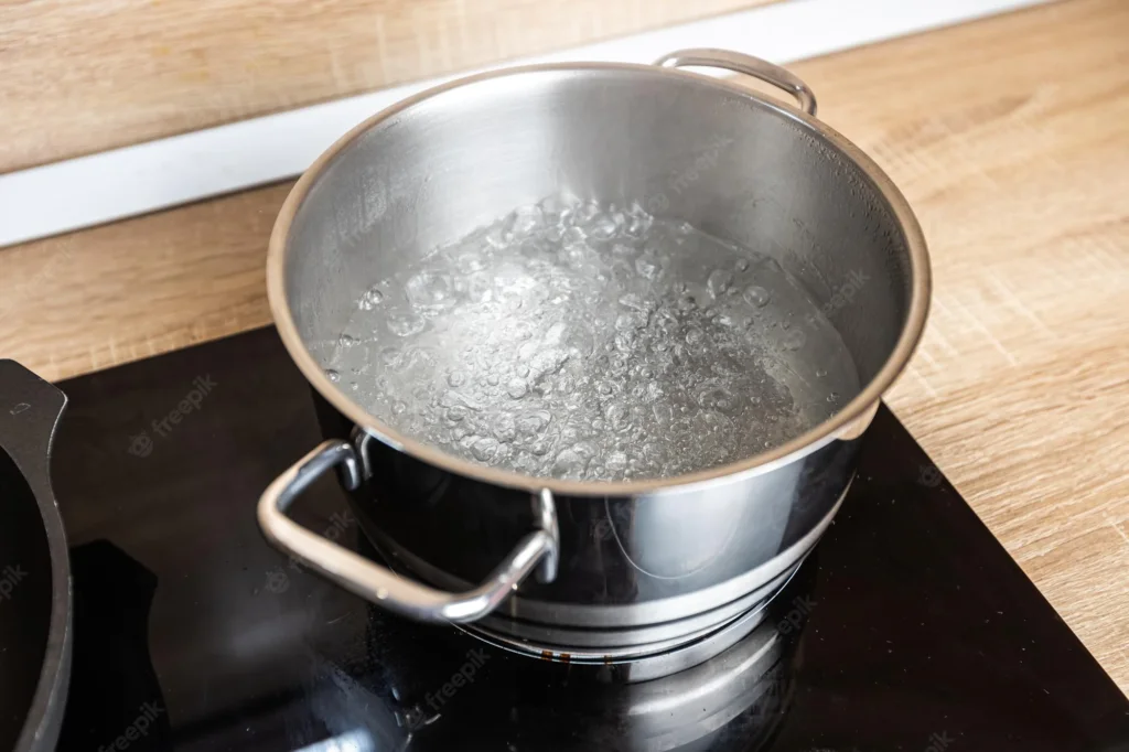 Coloque 1 Litro de água em qualquer recipiente e deixe-á até começar a ferver.